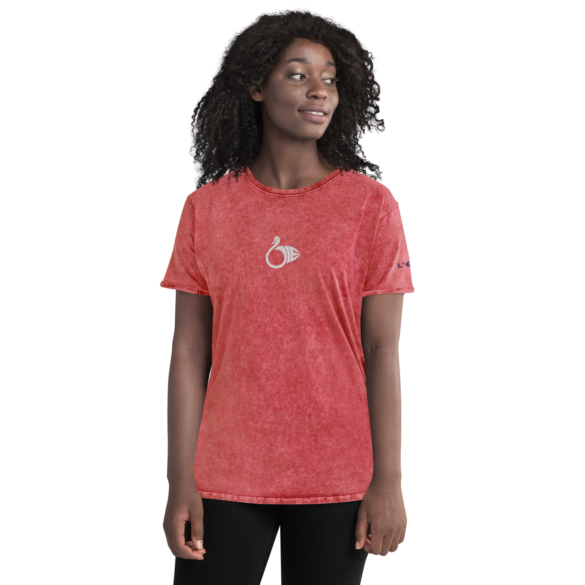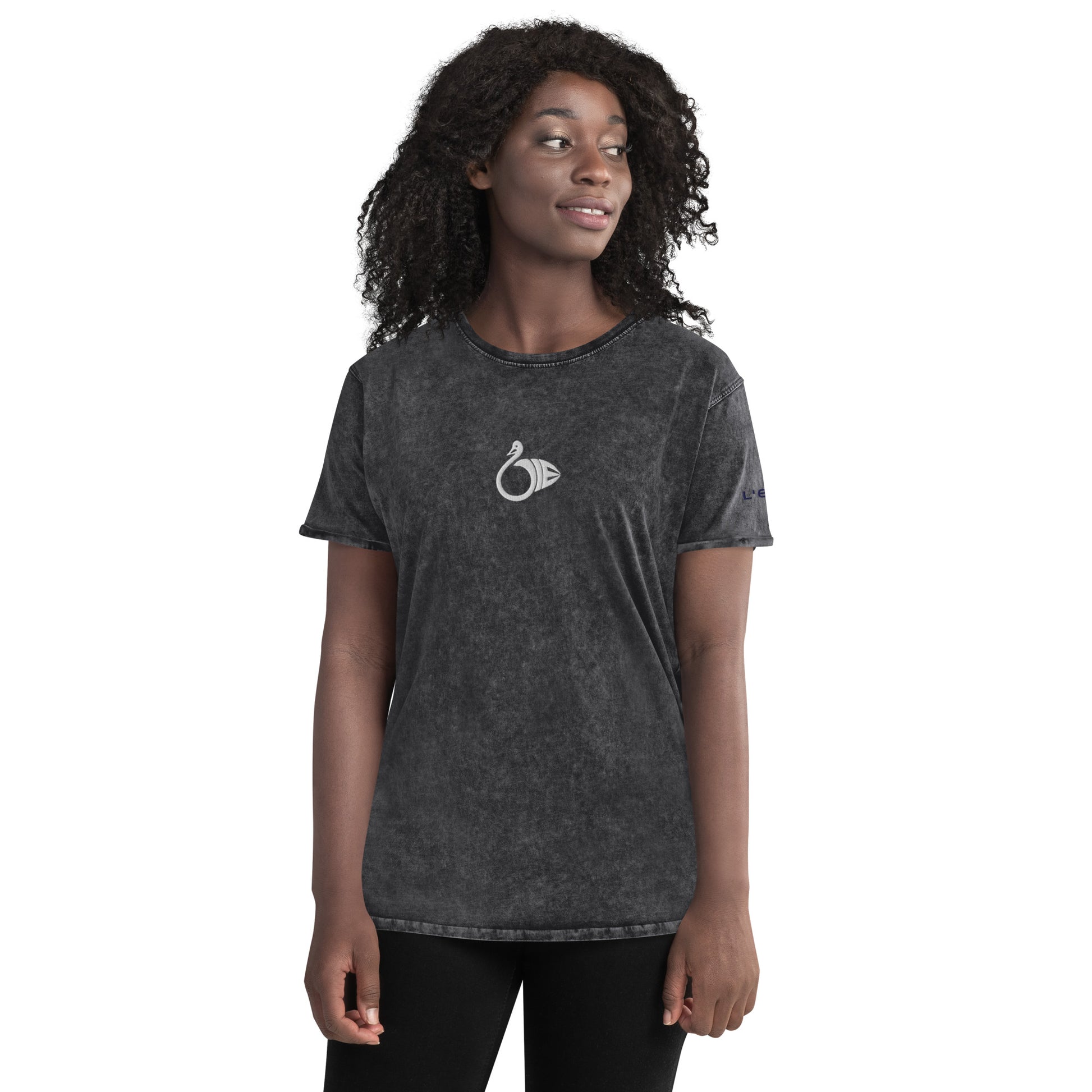 This denim t-shirt is made out of 100% combed cotton and has a classic rounded neckline with ribbed sleeve cuffs. It's soft, comfortable, and a must-have for every fashion enthusiast!